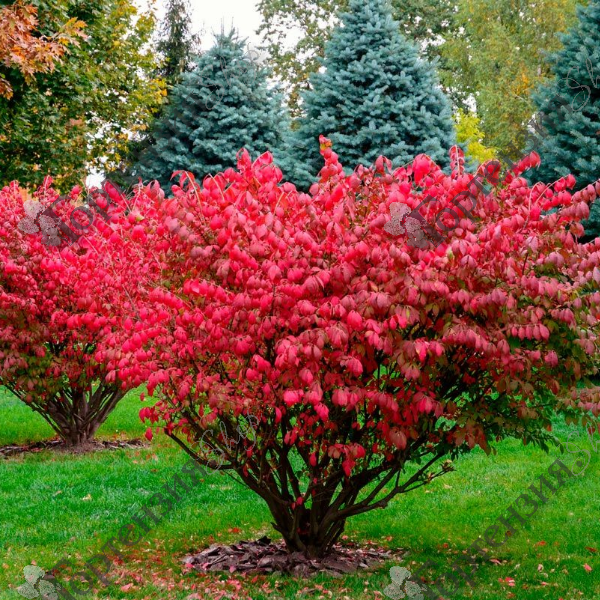 Бересклет крылатый (Euonymus alatus) Кустарник раскидистый с ажурной кроной и зеленовато-коричневыми побегами. Необычные пробковые крылья по краям четырехгранных побегов. Высотой до 1-2 м. Листья сложные, расположены супротивно, гладкие, зеленые а осенью ярко малинового цвета. Цветки невзрачные, мелкие, желтые, цветет весной. Распускаются после распускания листьев. Плод кожистая четырехгранная коробочка, которая при созревании окрашивается в яркие тона. Требуют плодородных хорошо дренированных почв, с щелочной реакцией. Не переносят переувлажнения. Может произрастать на солнце и в полутени. Прекрасно переносят обрезку. Используется в одиночной и групповой посадке. Морозостойкость высокая.