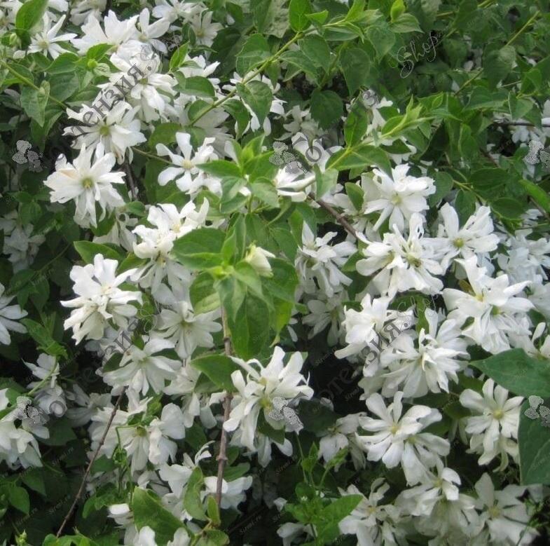 Чубушник махровый Ромашка – эффектный декоративный кустарник из семейства Гортензиевые. Коллекционный сорт отличается компактными размерами, изящными необычными цветками, делающими его непохожим ни на один сорт чубушников и отличной зимостойкостью. Крона пышная, округло-раскидистая, до 1м высотой и в диаметре. Ветви тонкие, дугообразно изогнуты. Листья матовые, ланцетно-продолговатой формы с резным краем, среднего размера, ярко-зеленые, осенью желтеют. Цветки крупные, махровые, почти плоские, чисто белого цвета, с узкими длинными лепестками до 3см длиной, в разнобой изогнуты вверх, вниз и пропеллерообразно, внешне напоминают магнолию, собраны в рыхлых соцветиях на концах побегов либо в пазухах листьев, без запаха. Цветение обильное, продолжительное, в начале июня. Засухоустойчив, в длительный жаркий период рекомендован регулярный полив. Предпочитает увлажненные суглинки, но не терпит застоя воды и засоленных почв. Любит солнечные места, переносит полутень, но уменьшает интенсивность цветения. Сорт устойчив к болезням и зимостоек.