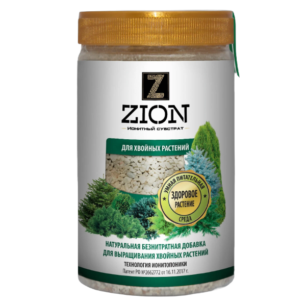 Удобрение Цион Для хвойных растений- питательный ионный субстрат, выделяет питательные элементы по запросу растения, обеспечивая полноценное развитие растений: густота кроны, насыщенность цвета хвои, рост. Применяется для посадки и подкормки всех видов хвойных растений. Предотвращает вымывание минеральных веществ, внесенных в почву. Позволяет на длительный период обходиться без внесения минеральных удобрений. ЦИОН содержит полный набор микро и макроэлементов, необходимых для гармоничного роста растений. Рекомендуется прямой контакт с корневой системой. Передозировка и корневой ожог невозможны. Не является минеральным удобрением, не содержит нитратов, гормонов, пестицидов, гербицидов и ускорителей роста. Обеспечивает формирование сильной корневой системы, эффективную подготовку растения к зимнему периоду и полноценное развитие растения после него.